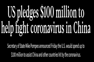 美国宣布将向中国等国提供1亿美元 协助抗击疫情