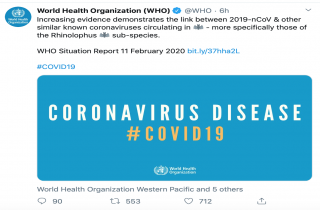 新京报快讯 世界卫生组织2月11日疫情报告显示,世卫组织将此次由新型冠状病毒引发的疾病命名为COVID-19(2019冠状病毒病)。