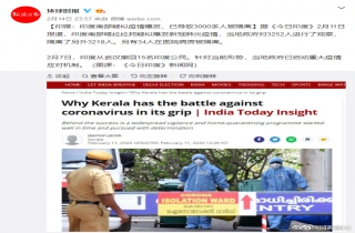 #印度南部3000多人被隔离#【印媒:印度南部疑似疫情爆发,已导致3000多人被隔离】据环球时报援引《今日印度》2月11日报道,印度南部喀拉拉邦疑似爆发新冠肺炎疫情,当地政...