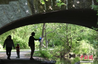 资料图:美国纽约州长岛市民在桥洞下钓鱼。 中新社记者 廖攀 摄