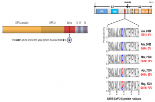 在新冠病毒的突变中,D614G突变的病毒株由于其的传播及潜在功能“脱颖而出”,然而病毒株持续在变异, 目前尚无充分证据证明D614G突变的病毒株的感染性,毒性有加强,尚未观测到对疫苗和检测的重要影响,后续需要更多实验验证和监测变异的现象。