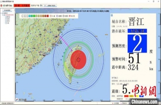 2019年4月18日台湾地区花莲6.7级地震地震预警系统处理(第1报)。中国地震局公共服务司 供图