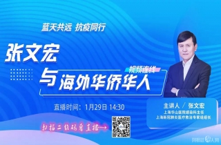 1月29日,上海海外联谊会、市侨办、市外办、市侨联举办“蓝天共远抗疫同行”——防疫专家与海外华侨华人视频连线,邀请上海新冠肺炎医疗救治专家组组长、华山医院感染科主任张文宏教授,向海外华侨华人及留学生介绍疫情防治有关情况。