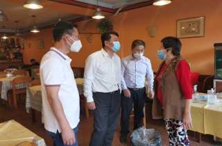 何文强主席每到一处都会详细了解新冠康复者的医疗、康复、护理、生活等情况。何文强表示,新冠只要早发现、早治疗可以完全治愈。希望侨界抗疫委员会继续发扬奉献精神,坚守岗位,为阿根廷的抗疫工作贡献自己的力量,希望大家一起打赢这场无烟的战争。