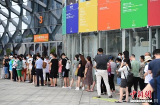 5月31日,中国广东省深圳市南山区,市民排队等候接种疫苗。 中新社记者 陈文 摄