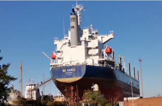 据赵晓东介绍,这艘滞留在阿根廷的是一艘大型货运船,平时在世界各国运木材到中国,平时差不多4个月来回一次,这次是在乌拉圭运木材时不小心搁浅,后来强行用拖船拉出来后发现船桨坏了,而乌拉圭没有维修条件,所以才拖到阿根廷来修理。