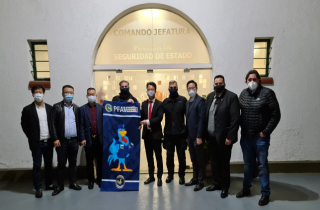 (阿根廷华人网7月7日讯Lisa)联邦警察是阿根廷主要执法力量,今年恰逢联邦警察成立两百周年(1821-2021)的周年庆,阿根廷华助中心严祥兴主任,阿根廷华人进出口商会会长兼华助中心执行主任薛文强,白城国际贸易集团董事长林航,华助中心安全组组长陈振宇,副组长柯立新于7 月 6日应邀在骑警总部参加联邦警察成立两百周年座谈会,联邦警察总局局长胡安.卡洛斯.埃尔南德斯和副局长奥斯瓦尔多·马托 出席会议并和华人代表进行了亲切的座谈。