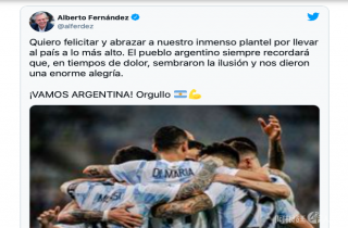 费尔南德斯通过其个人社交网络账号表示:“在此祝贺并拥抱我们无比伟大的球队,为这个国家赢得了至高的荣誉。阿根廷人民将始终会记得,痛苦时播下的希望,如今我们苦尽甘来。”
