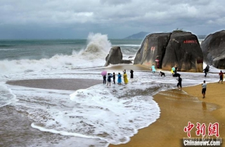 图为近日在三亚天涯海角旅游区嬉浪的游客。 游建行 摄