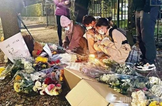 郑少雄遇害后,多名当地留学生前往事发地点悼念。(图源:芝加哥留学生拍摄)