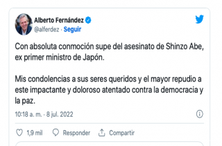 (阿根廷华人网7月9日讯 黄东)阿根廷总统费尔南德斯本周五对日本前首相安倍晋三被刺身亡一事表达谴责。