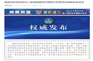 中新网11月29日电 据“南部战区”微信公众号消息,南部战区新闻发言人田军里空军大校表示,11月29日,美“钱斯洛斯维尔”号导弹巡洋舰未经中国政府批准,非法闯入中国南沙岛礁邻近海域,中国人民解放军南部战区组织海空兵力进行跟踪监视并予以警告驱离。