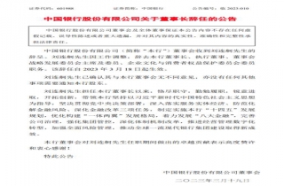 另外,19日,中国银行公告称,刘连舸因工作调整,辞去董事长、执行董事、董事会战略发展委员会主席及委员、企业文化与消费者权益保护委员会委员职务。