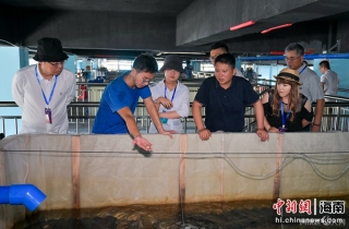8月20日,2023年“行走中国·海外华文媒体海南行”活动走进海南文昌冯家湾现代化渔业产业园,来自14个国家的20位海外华文媒体人士实地了解海南渔业转型发展变迁。