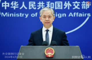 中新网北京4月22日电 (记者 黄钰钦 梁晓辉)中国外交部发言人汪文斌4月22日主持例行记者会。