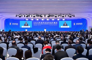 中新社北京4月25日电 (记者 陈杭)25日,2024中关村论坛年会(下称论坛)开幕式暨全体会议在北京举办。论坛以“创新:建设更加美好的世界”为主题,突出前沿探索、成果共享与开放合作,100多个国家和地区、150余家外国政府部门和国际组织机构等受邀参会,打造全球科技创新交流合作盛会。