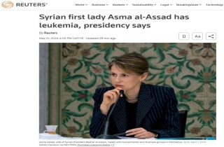 中新网5月21日电 综合法新社、美联社、路透社报道,叙利亚总统办公室当地时间21日表示,叙利亚总统巴沙尔·阿萨德的妻子阿斯玛被诊断患有白血病。