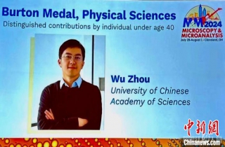 中新网北京8月26日电 (记者 孙自法)中国科学院大学(国科大)8月26日向媒体发布消息说,该校物理科学学院周武教授荣获2024年度美国显微学会伯顿奖章(Burton Medal),旨在表彰他在单原子分辨电子显微分析技术领域的突出贡献,以及他在材料科学应用研究中取得的系列原创成果。