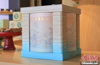内圆外方的礼盒造型同良渚玉琮王相似。轻轻点亮内置灯带,礼盒化身跑马灯,流光溢彩地展示出五千多年前的良渚先民、一千多年前的宋朝人,以及近代、现代人们的生活场景。该款月饼上的图案则来自玉鸟、玉凤、玉鹿等与玉器相关的瑞兽形象,口味有龙井柚子、海盐生椰拿铁、黑椒牛肉等。