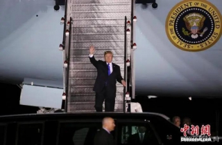 资料图:美国总统特朗普乘坐“空军一号”。中新社记者 刘震 摄