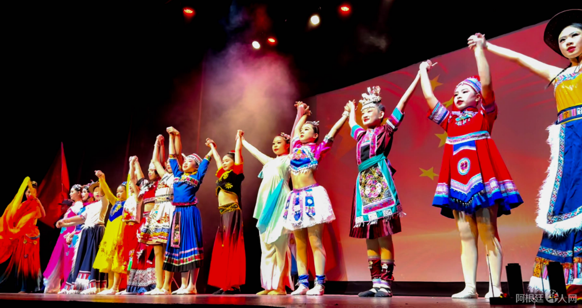 阿根廷华文教育基金会静雅艺术中心的小朋友表演中国民族舞蹈。