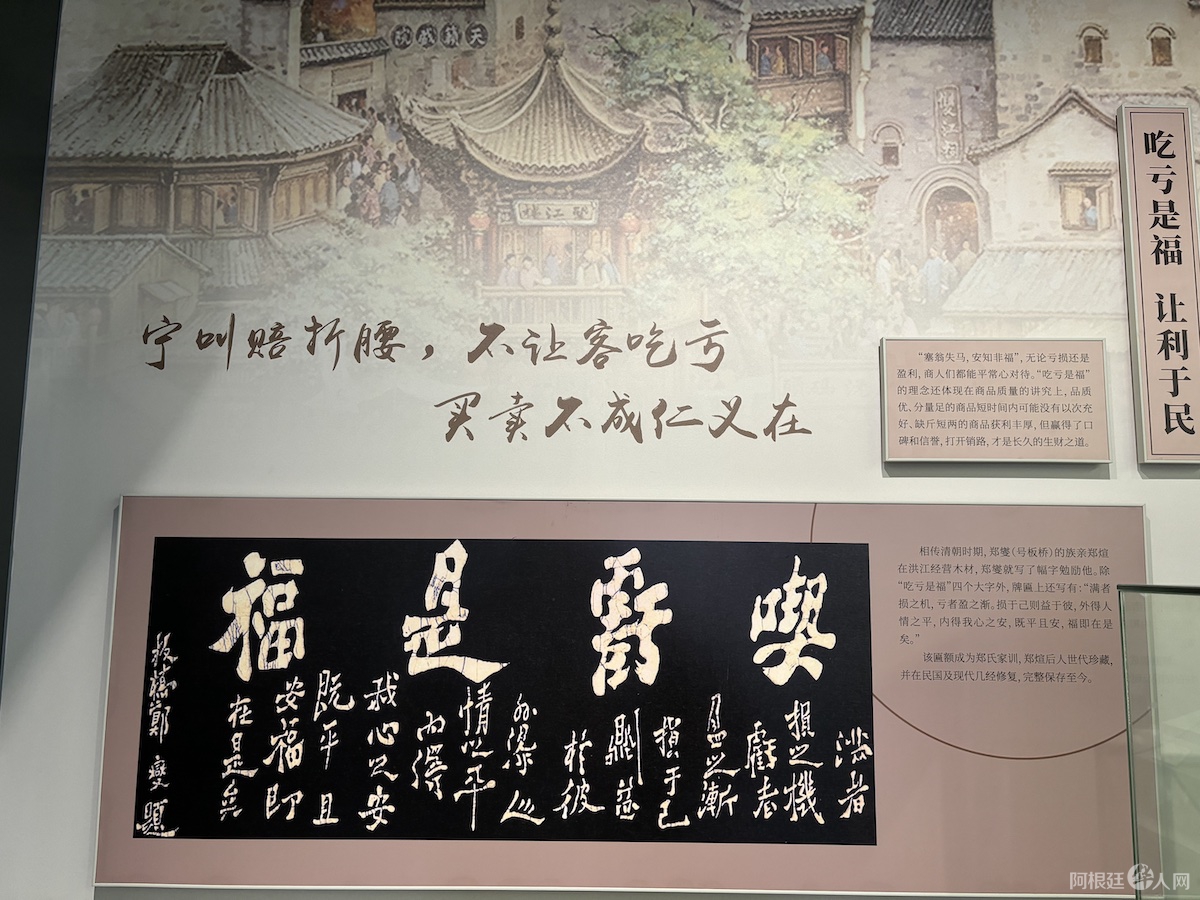 参访团重点参观了清代钱庄、镖局和报馆等特色场馆。在百年钱庄内,精巧的银票印版和账册让海外媒体人直观感受到古代金融体系的发达;镖局陈列的各式兵器与契约文书,则生动再现了当年商路护卫的江湖传奇。令人印象深刻的是郑板桥题写的“吃亏是福”四个大字,深刻诠释了“里仁为美 ·重义轻利” 的洪商精神,也道出了“利他”的商业本质,造就了千年昌盛的洪商古城。