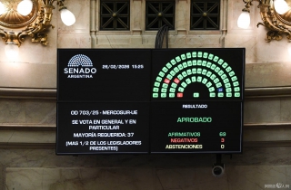 (阿根廷华人网2月26日 黄东)本周四,阿根廷参议院以69票赞成、3票反对批准了南共市(Mercosur)-欧盟贸易协定,成为第二个批准该协议的国家。阿政府对此表达庆祝:“这标志着阿根廷融入国际的一个里程碑。”