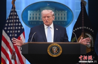 当地时间4月6日,华盛顿,美国总统特朗普就伊朗战事在白宫举行记者会。中新社记者 陈孟统 摄