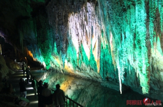 在五彩灯光的映照下,参访团穿梭于石笋、石幔、石花、石瀑之间。芙蓉洞的次生化学沉积物种类多达70余种,其中“巨幕飞瀑”“珊瑚瑶池”“生命之源”“犬牙晶花”等景观被誉为洞穴魁宝。国际洞穴协会前主席曾赞叹“芙蓉洞是世界上最好的游览洞穴之一”。嘉宾们频频举起相机,惊叹大自然的神奇造化。