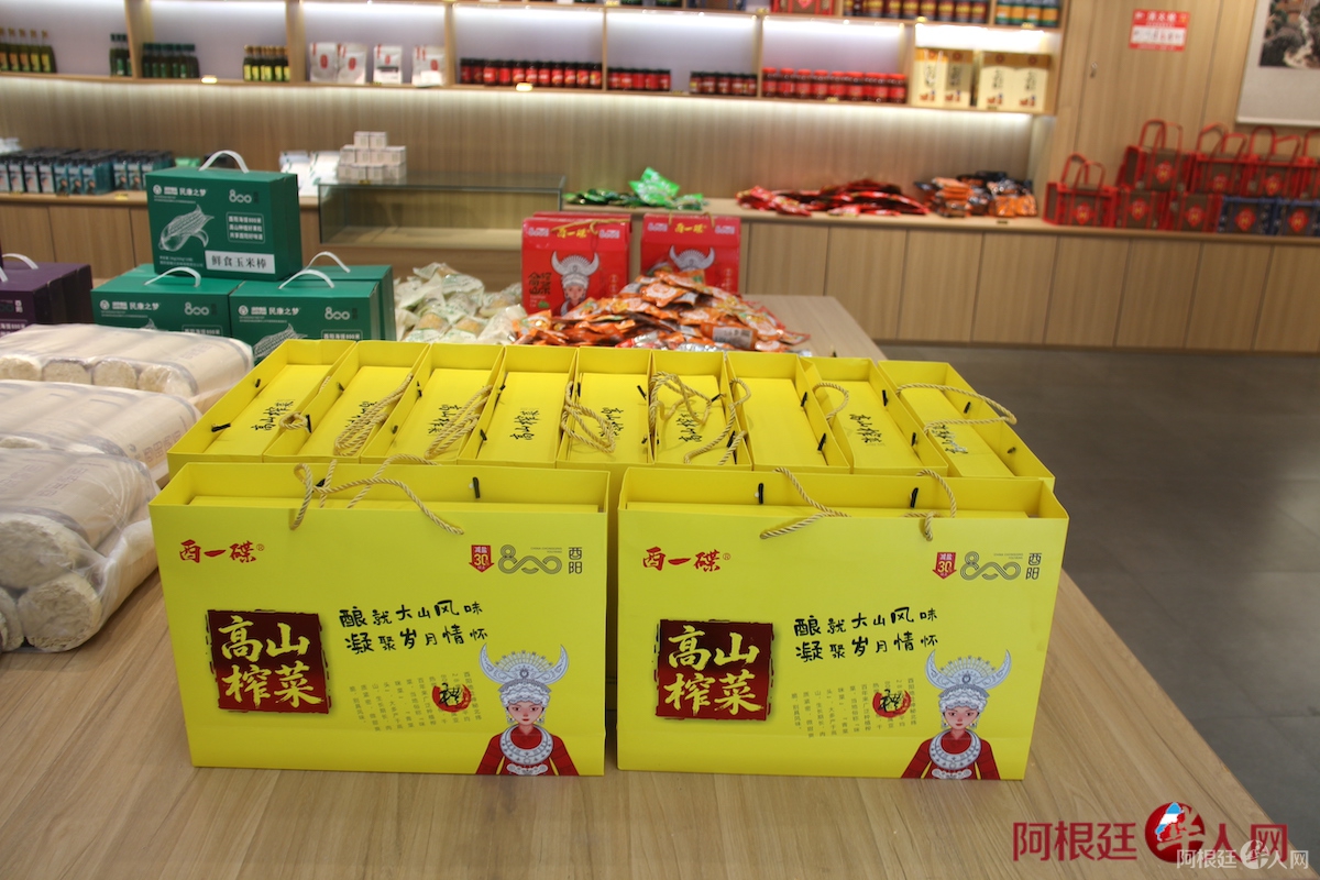 “酉阳800”农特产品展销中心位于桃花源景区游客集散中心,占地面积约1650平方米,于2024年2月建成投用。展销中心分为茶、米、油、蜜、青蒿、酵素、非遗、综合区8个区域,汇聚了酉阳县生态农业协会139家会员企业及47家授权企业共49大类348款优质农特产品。