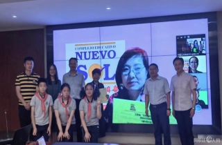 随后由新太阳三语学校的贾微校长跟金陵小学的师生们介绍分享了新太阳三语学校的特色与文化。新太阳全日制中西英三语学校的前身是新太阳学校,它是一所具有阿根廷官方教育部门认证资质的正规私立学校,建校40余年。新太阳学校自2014年增设中文教学部起,专门接收西文零基础学生。新太阳有专门的教师团队帮助中国学生,协助学生顺利升学、毕业。新太阳三语学校自筹建以来,一直受到中国驻阿根廷使馆及侨领、侨贤们的鼎力支持,在短短的八个年头里,培养了七百余名中西英三语人才,到目前为止,先后有八十余名学生进入了暨南大学、华侨大学、浙江大学、武汉大学、南京大学、西南大学、中央财经大学、上海同济大学等国内高等学府深造,四十余名学生则进入布宜诺斯艾利斯国立大学、UADE、UAI、BELGRANO、MORON等阿根廷大学攻读学士学位…新太阳三语学校与中国多所高校建立了战略合作伙伴关系,为国内大学甄选、输送优秀生源。同时也与阿根廷多所中学以及国立、私立大学合作,接收中国的中学、大学、硕士、博士留学生。学校以开展促进双向留学生交流和中阿文化交流为目标,不断前进着。