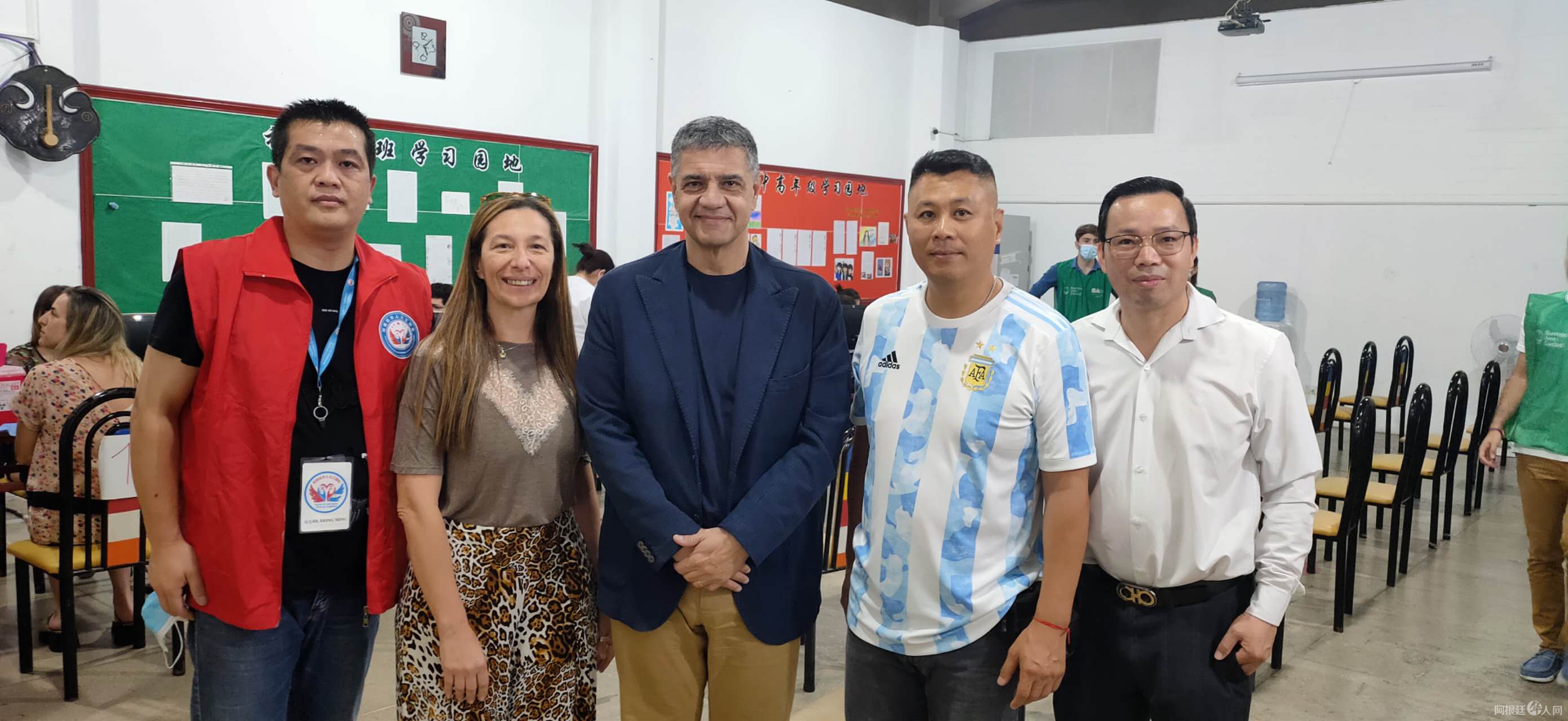 (阿根廷华人网12月23日讯Lisa)近日,在圣诞节和新年来临前夕,阿根廷华文教育基金会在布市13区区长佛罗伦萨斯.卡维诺和布市13区区委陈源志陪同下来到布市中国城疫苗接种点。向疫苗接种站送上240份圣诞礼包,让疫苗接种站的医护工作人员过个幸福愉快的圣诞节,受到医护工作人员的热烈欢迎。