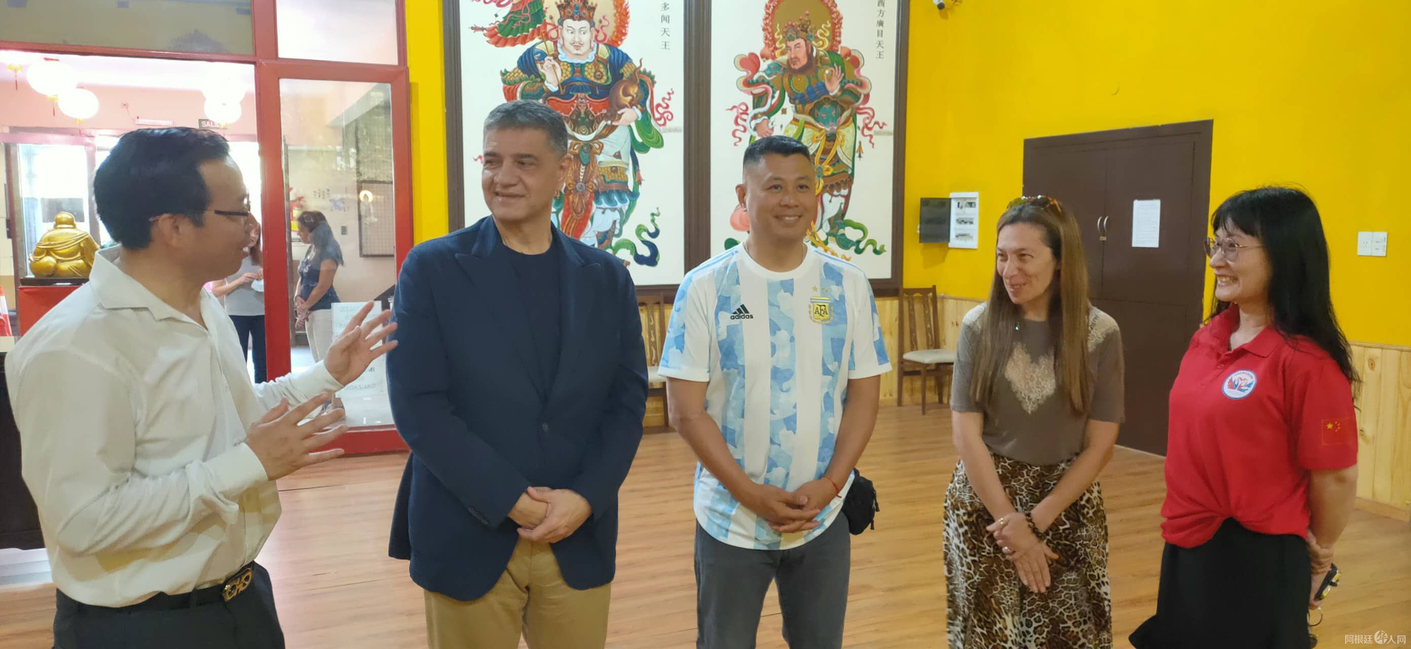 阿根廷华文教育基金刘芳勇介绍说,今天捐赠圣诞节礼包给布市几个疫苗接种站点都是在布市中国城附近,在阿根廷疫情发生至今,这些疫苗接种站点承担了大部分布市华侨华人的新冠接种任务。今天我们来这边捐赠就是为了感谢这两家疫苗接种中心为我们侨胞身体健康保护做出的贡献。在中国城临时疫苗站点中观寺内,刘芳勇会长用西文普及佛教的一些缘由和典故给布宜诺斯艾利斯市政府副市长兼内阁部长豪尔赫.马克里及13区区长佛罗伦萨斯.卡维诺,二者非常认真的聆听并提问了一些事关系佛教的事,刘芳勇会长都一一详细介绍和解答。