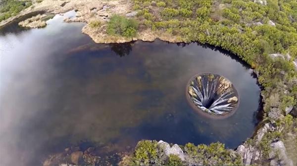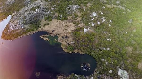 根据英国Express网站报道,葡萄牙有3名年轻人,在不久前到埃什特雷拉山脉的国家保护区旅行时,拍到了令人惊讶的“地球破洞”景象!远看还以为又是外星人的杰作,其实这座湖中孔洞是一个水坝,隧道深1000多公尺,四周湖中的水纷纷流入,美丽秘境让人惊叹。