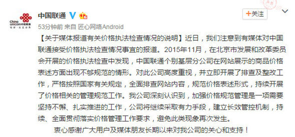 中国联通回应被罚65万元:杜绝利用虚假价格诱骗交易发