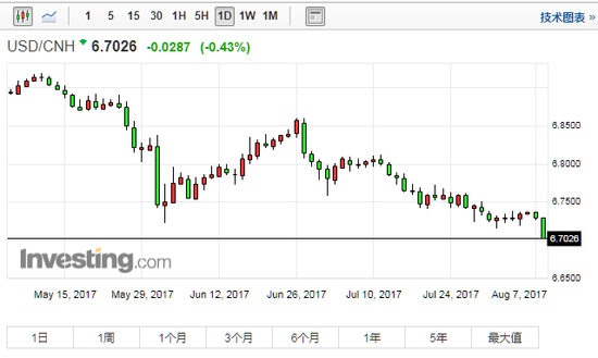 人民币强势回归 涨破6.7大关创近10个月新高 国内新闻 • 2017-08-08 08:08• 收藏本文 GjC阿根廷华人网 转载本网稿件,原则上需要书面授权,不得篡改稿件主题。本网随时有权要求第三方停止侵权行为。 本网所载内容或图片,若涉及侵权,请联系删除。 08 ___________ 2017/08 人民币强势回归 涨破6.7大关创近10个月新高 人民币强势回归 涨破6.7大关创近10个月新高 [ 微信长按识别二维码或扫码查看分享内容 ]