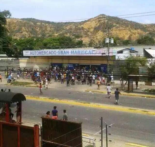 委内瑞拉苏克雷州库马那市居民哄抢当地超市,其中包括数家华人商铺。(网页截图)