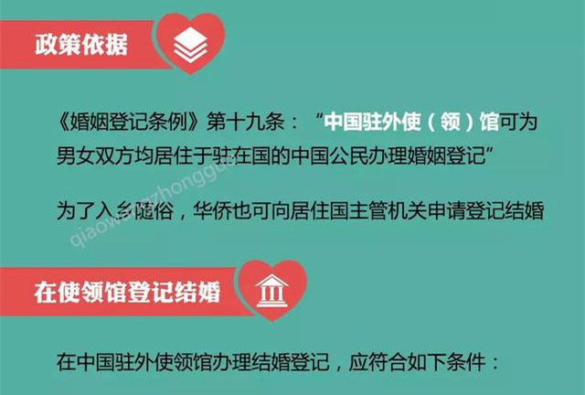 随着全球流动人口规模的不断扩大,中外人员之间的民事交往也日益频繁。其中,有关华侨华人在居住国、中国驻外使领馆或中国内地办理结婚手续及其婚姻关系的相互承认,在很多情况下,离不开中国驻外使领馆的协助。下面小侨就带大家了解一二,希望能帮到有需要的朋友。