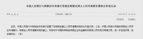 央行网站新闻稿并称,阿根廷人民币清算安排的建立,将有利于中国和阿根廷两国企业和金融机构使用人民币进行跨境交易,进一步促进贸易、投资便利化。gzA阿根廷华人网