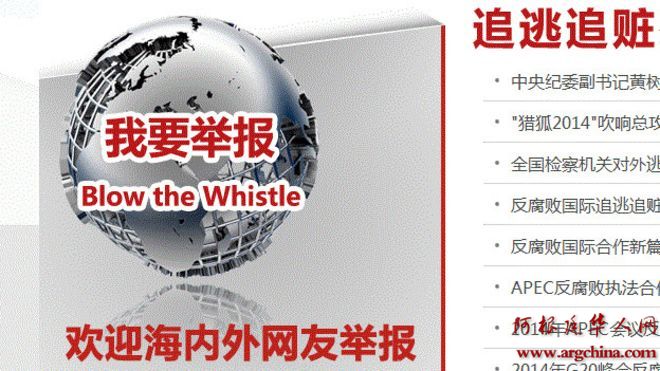 中国反腐最高当局网站推出“反腐败国际追逃追赃”栏目,并欢迎国内外网友举报。在中纪委网站开通的国际追逃追赃网络举报窗口显示中央纪委副书记黄树贤的表态:...