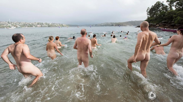 一丝不挂只为慈善 千人悉尼裸泳太壮观