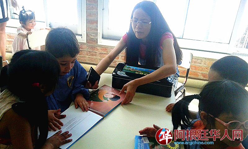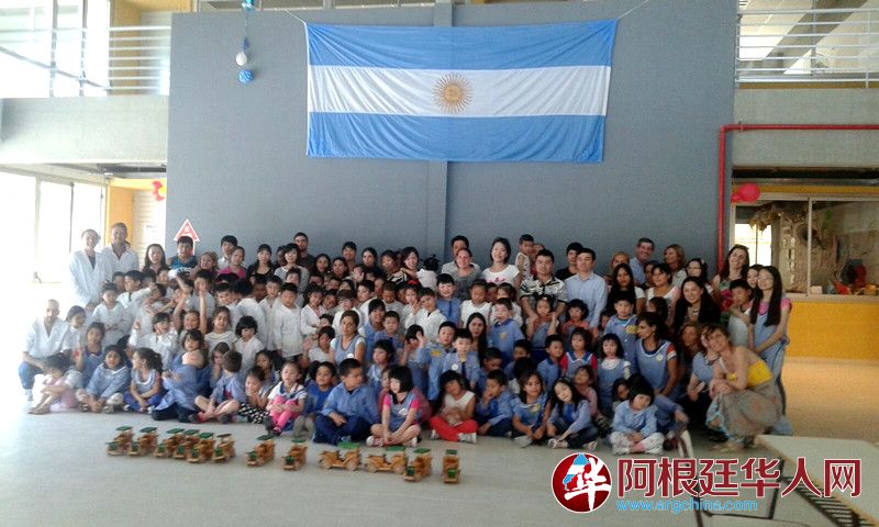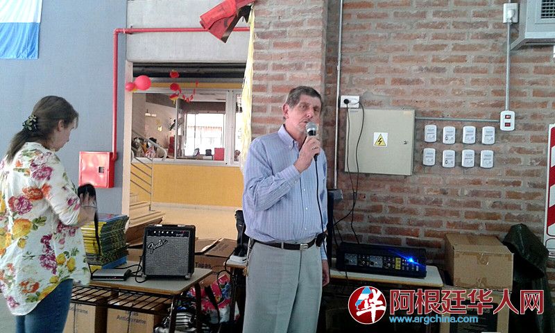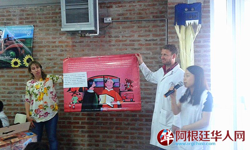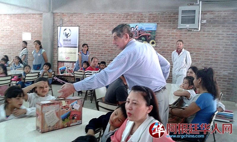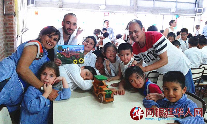 (阿根廷华人网12月2日讯 邹迪/文、图)昨天下午,阿根廷中西文双语学校举办了一次特殊的文化活动。阿根廷著名童话作家PABLO ZUKER老爷爷来到学校,为学前班和一年级的小朋友讲述他创作的童话故事,并向学校赠送了他创作的儿童读物和他购买的拼接儿童玩具。学校学前班和一年级共120名学生和部分学生家长参加了活动。