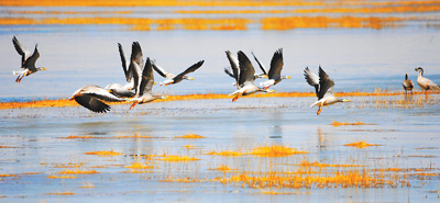 马晓伟摄(人民视觉)近年来,各地推进“美丽中国”建设,生态环境明显改善。地处祁连山最西端的甘肃省阿克塞哈萨克族自治县境内的苏干湖草原湿地保护区,由大、小苏干湖和海子湿地草原...
