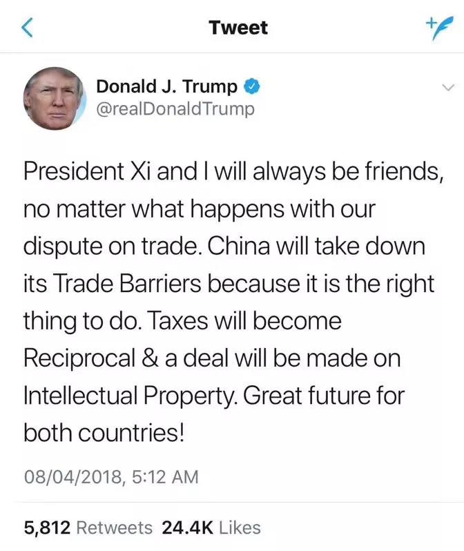 “尽管中美两国发生贸易纷争,习主席跟我永远是好朋友。我们两国一定会有美好的未来!”8日晚,特朗普最新的推特这样写。一会儿杀气腾腾,一会儿横生指责,一会儿又打个巴掌揉三揉,特...