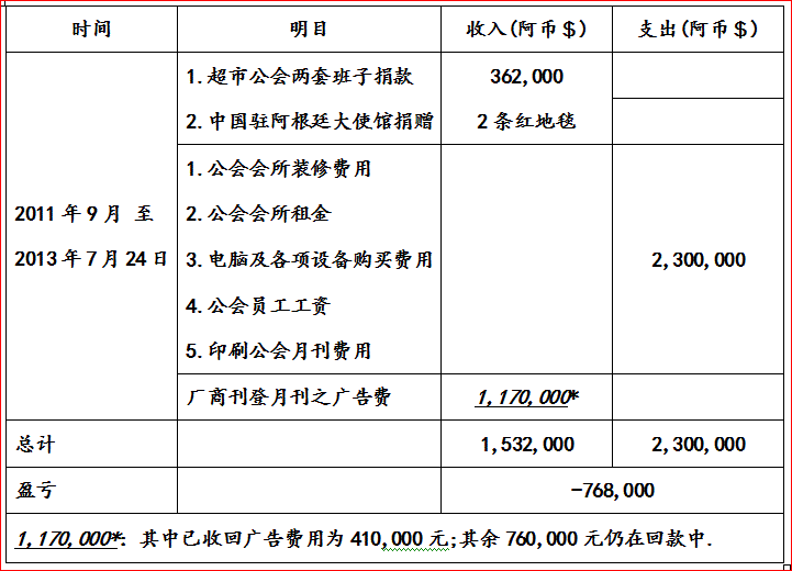 鉴于此,阿根廷华人超市公会决定对自2011年9月以来的财务账目进行公开,将透明化的财务状况呈现给广大侨界人士。(华人超市公会财务账目在公会内部早已公开)