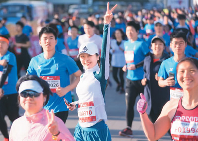 图为四月十五日,二○一八北京国际长跑节—北京半程马拉松在天安门广场起跑,来自三十二个国家和地区的两万余名跑者参加。图为参赛选手在比赛中。北京国际长跑节、武汉马拉松、生态...