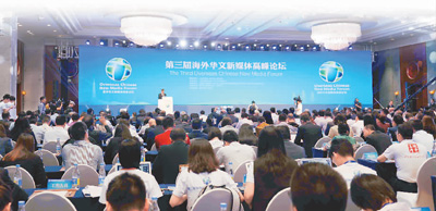 图为开幕式现场。本报记者 赵树宴摄海外网杭州5月29日电(记者严瑜、叶子)融合新时代,承担新使命。第三届海外华文新媒体高峰论坛今天(29日)在浙江杭州举行。本届论坛由人民日...