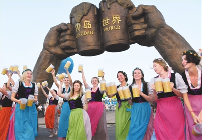 7月20日,第28届青岛国际啤酒节开幕。图为演员在青岛西海岸新区金沙滩啤酒城大门外表演。 新华社记者李紫恒摄7月22日,外国游客在啤酒城内畅饮。 宋旭光摄欢聚五洲宾朋...