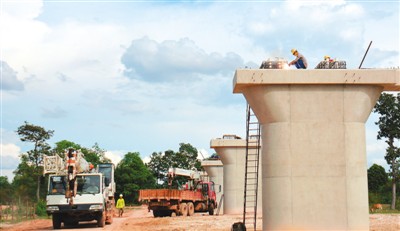 建设中的中老铁路全线最长桥——楠科内河特大桥施工现场。楠科内河特大桥是中老铁路全线最长的桥,全长约7506米,全桥共230个墩(台)。作为中老两国“一带一路”合作的重要组成...
