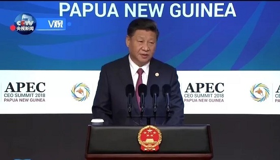 11月17日,巴布亚新几内亚首都莫尔兹比港。习近平主席在亚太经合组织工商领导人峰会上,以一个主旨演讲为世界把脉问诊、开出药方。这次会议,是在一艘叫“太平洋探索者号”的游轮上...